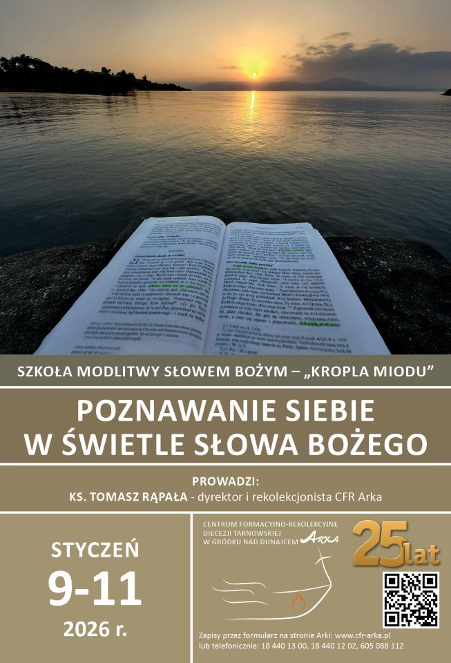 Poznanie własnej wartości zależy od dotarcia do prawdy o sobie, ale tylko w świetle słowa Bożego. Ono jest dobra nowina o nas i do nas. Wspaniałym doświadczeniem w codziennym życiu jest zobaczenie swojej historii życia w oczach Boga. Jednak, żeby to się dokonało potrzebujemy „lustra”, którym jest żywe słowo Pana Boga, który kocha do końca. Sesja rekolekcyjna jest dla wszystkich, którzy pragną zgłębiać słowo Boże w codzienności życia, odkrywając w jego świetle prawdę o sobie. Rekolekcje mają charakter dynamiki lectio divina czyli słuchania słowa Pana Boga.