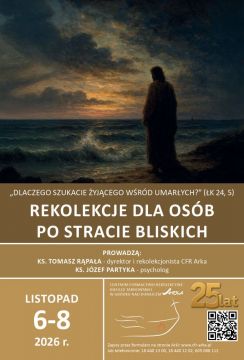 Śmierć bliskich jest trudnym doświadczeniem w naszym życiu. Jest tajemnicą. W takich sytuacjach potrzeba nam Bożego czytania tych trudnych doświadczeń. Pan Jezus uczy nas właściwego spojrzenia na życiowe wydarzenia. Nikt nie żyje dla śmierci, żyjemy dla życia! To życie ma ostatnie słowo. „Gdzie jest o śmierci twoje zwycięstwo? (1 Kor, 15,55). Śmierć jest pokonana przez Życie w Bogu! Jezus na krzyżu nie czekał na śmierć, czekał na życie. Biblia jest o życiu. Dlatego zgłębiając żywe Słowo Boże będziemy podczas sesji odkrywali nowy sens trudnych wydarzeń. Podczas rekolekcji będzie spotkanie z księdzem psychologiem, które podzieli się tematem dotyczącym przeżywania żałoby.
